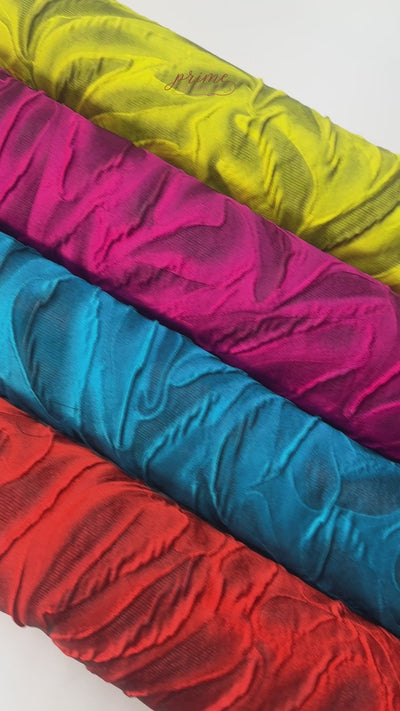 This lightweight cloqué brocade is all about movement. Its sculpted surface twists and folds like liquid caught mid-splash, giving it a fluid, three-dimensional look while still holding a gentle structure. It’s a fabric made to be noticed — for garments that don’t just drape, but make a statement the moment you walk in. Perfect for fashion that leans bold, architectural, and unforgettable.