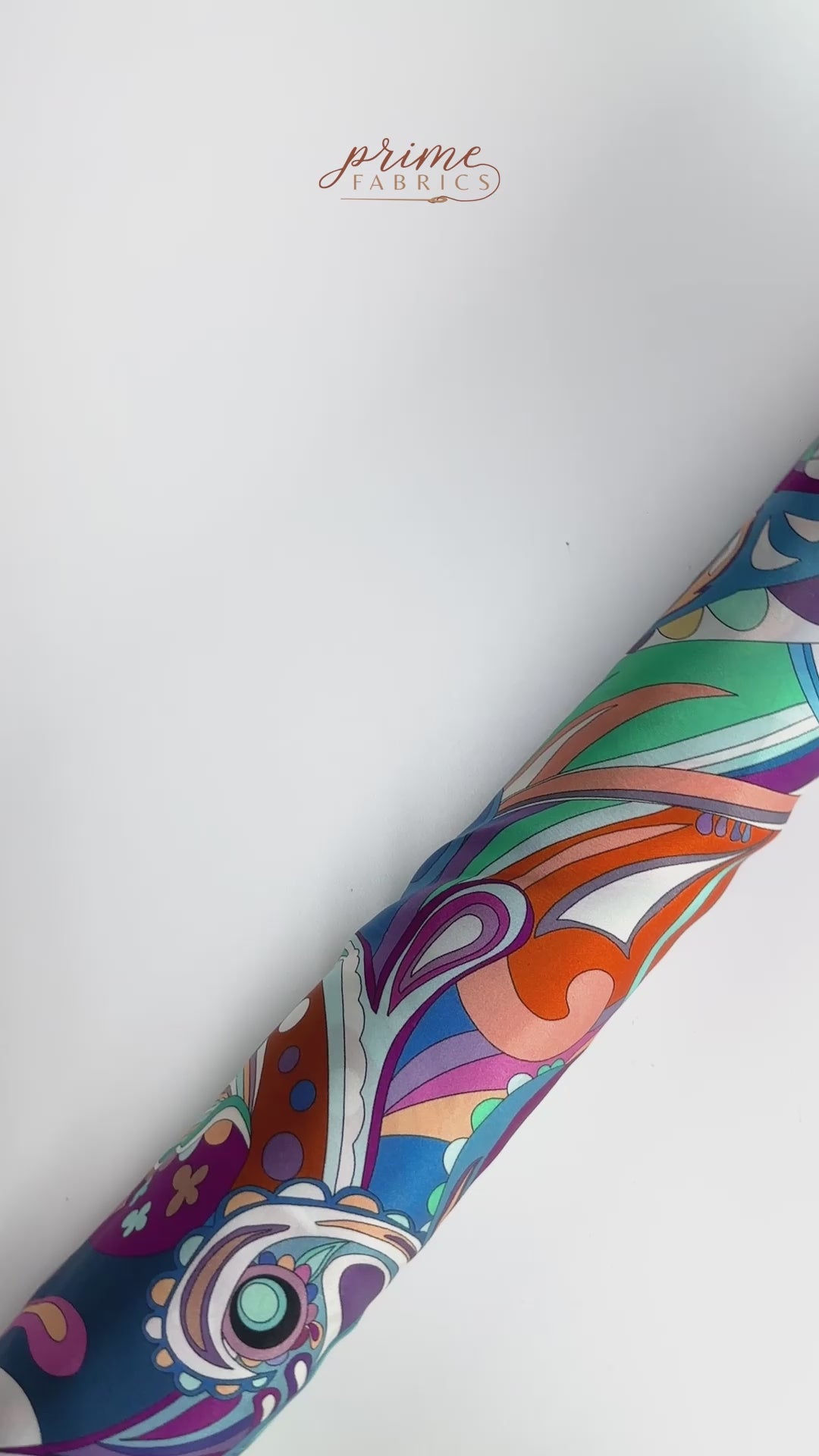 A bold, Pucci-inspired stretch silk charmeuse with a kaleidoscope of swirling color. Lightweight and fluid with a lustrous finish—perfect for statement blouses, flowing dresses, or dramatic linings.