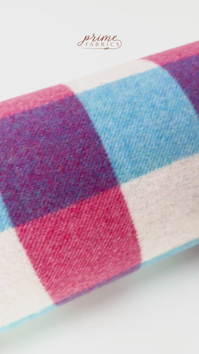 This double-faced wool-nylon coating is a showstopper — playful yet refined. One side features a large pink and blue check, while the reverse has a smaller, more intricate plaid in coordinating tones. The hand is soft and brushed with a cozy, substantial weight that still drapes beautifully. Perfect for reversible coats or statement outerwear that blends craftsmanship with personality.