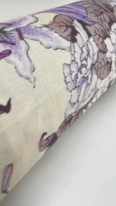 Emanuel Ungaro - Floral Italian Silk and Wool Print - Cream / Lavender