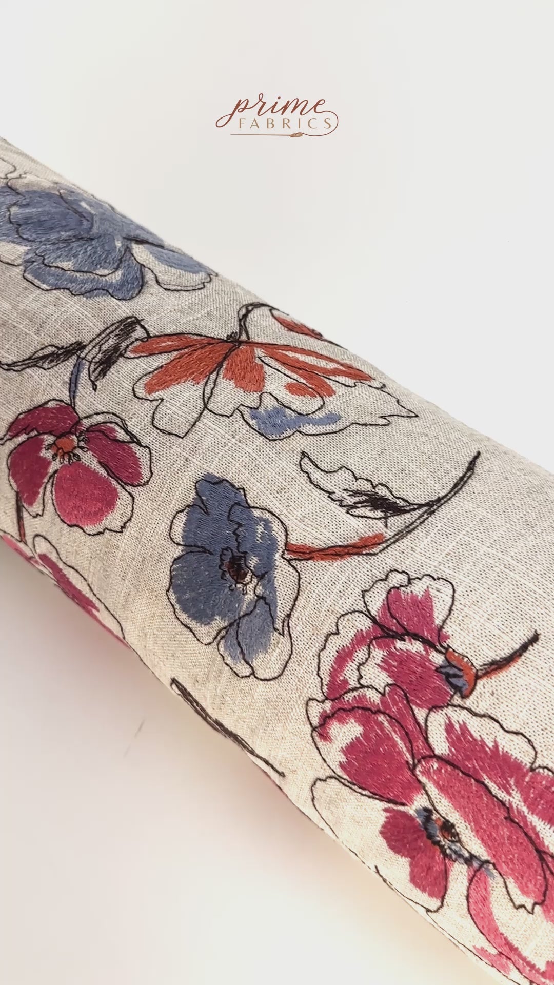 Floral Embroidered Italian Linen - Beige / Dusty Blue / Rose