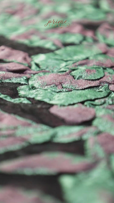 Floral Italian Silk Blend Découpé Brocade - Black / Green / Mauve