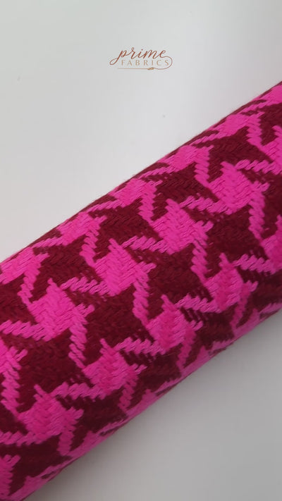 Houndstooth Wool Mohair Tweed Coating - Pink / Maroon