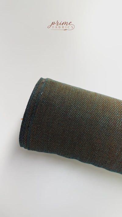 A midweight twill with a subtle ribbed texture and an unexpected glow. Woven in rich coppery brown and electric blue, the surface catches the light with a stunning, iridescent shimmer that shifts as it moves. Fluid in drape, structured enough to hold form—this is twill with depth.
