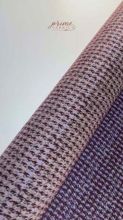 Metallic Houndstooth Brocade - Burgundy / Brown / Blue