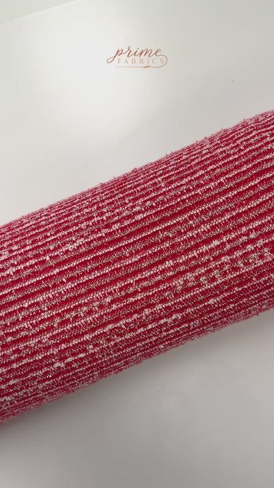 Metallic Wool Blend Tweed Boucle - Red / Off White / Gold / Silver