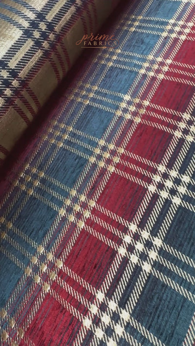Plaid Metallic Chenille Brocade - Burgundy / Navy / Gold