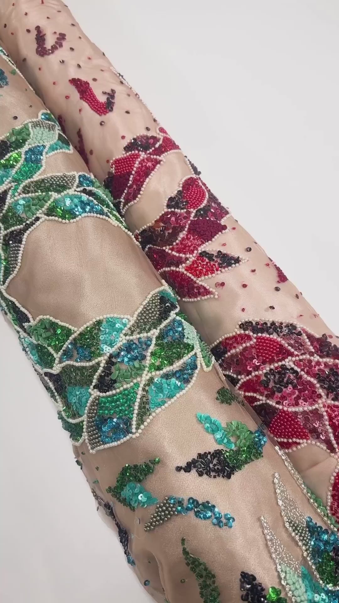 Snake Design Hand Beaded, Embroidered, and Sequined Mesh - Red