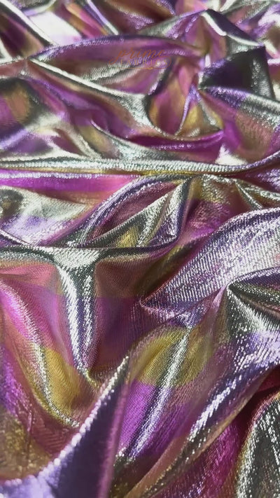 Light, fluid, and luminous — this striped silk lamé blends soft silk with metallic shimmer for a fabric that catches every bit of light. The smooth hand and effortless drape make it perfect for dresses, blouses, flowing skirts, or even dramatic scarves. Designed for pieces that move, this fabric adds a touch of brilliance to every step.