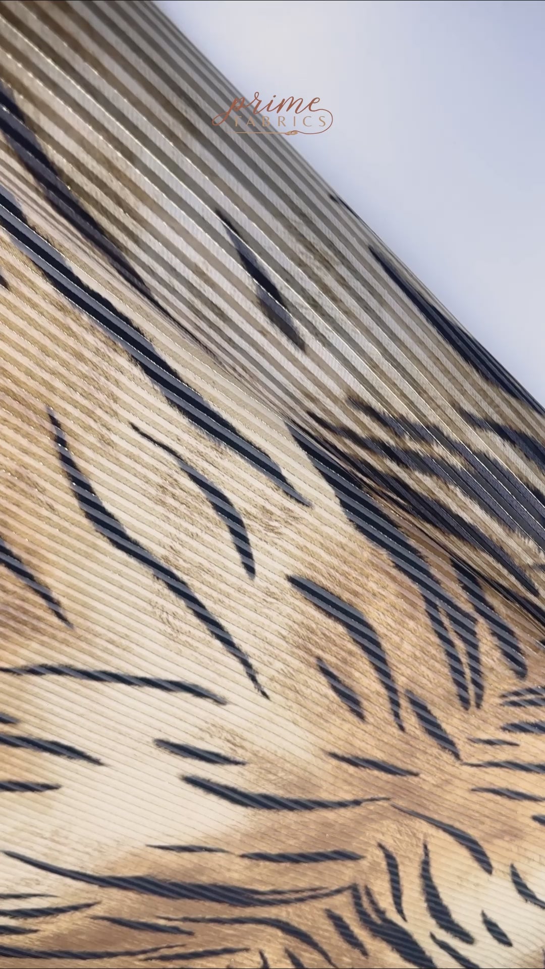 This silk metallic burnout moves like liquid sunlight—its sheer, striped surface catching light with every ripple. Golden tones fade into soft beige, streaked with painterly black lines that suggest motion and depth. Lightweight and fluid, it drapes beautifully for blouses, overlays, or gowns that shimmer subtly as they move.